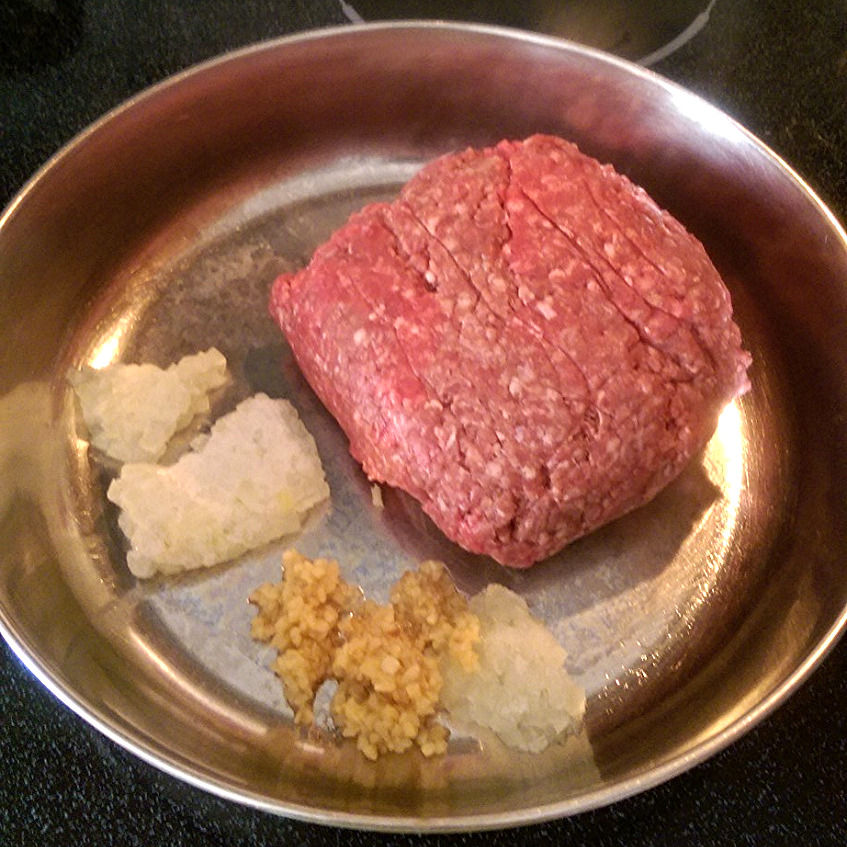 1 lb. Hamburger & Seasonings (chopped onion, minced garlic, salt & pepper, and parsley- OR whatever you like to season your ground with)